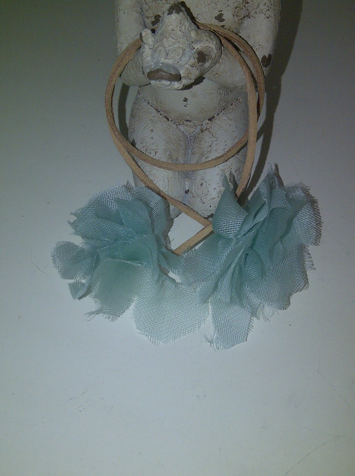 Cordón de ante en camel y organza de seda en verde agua, como pulsera o collar.